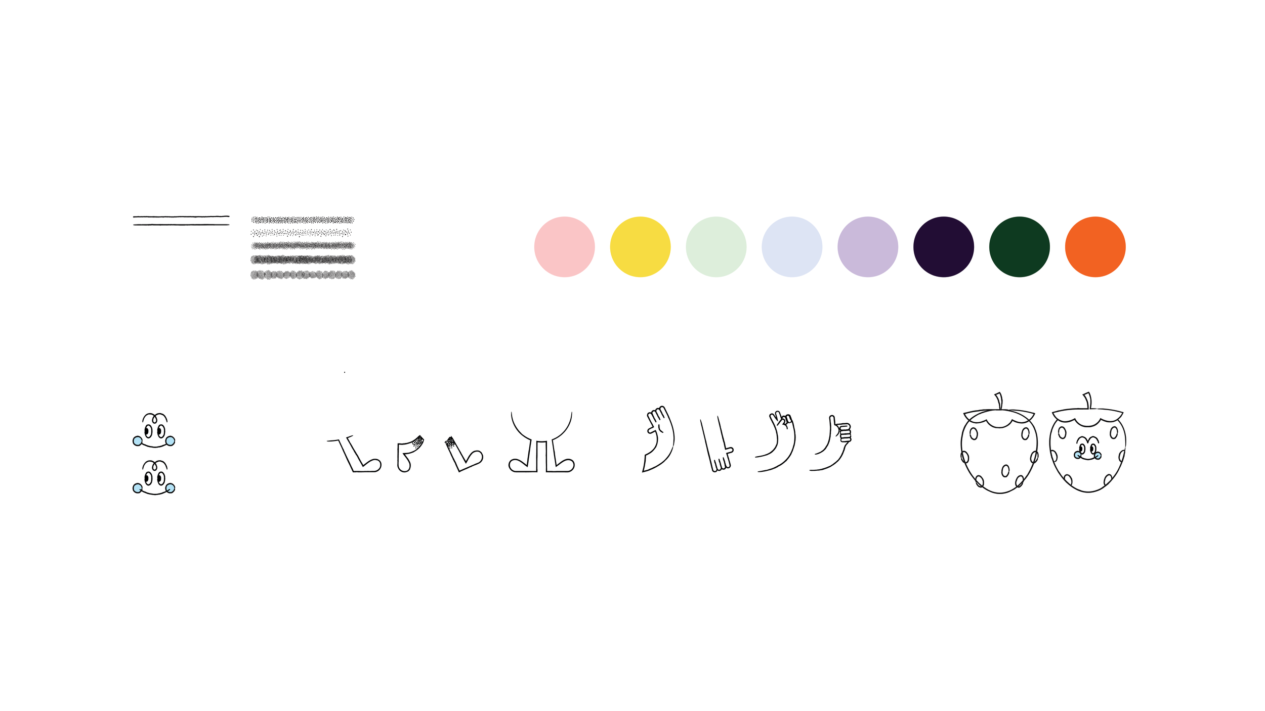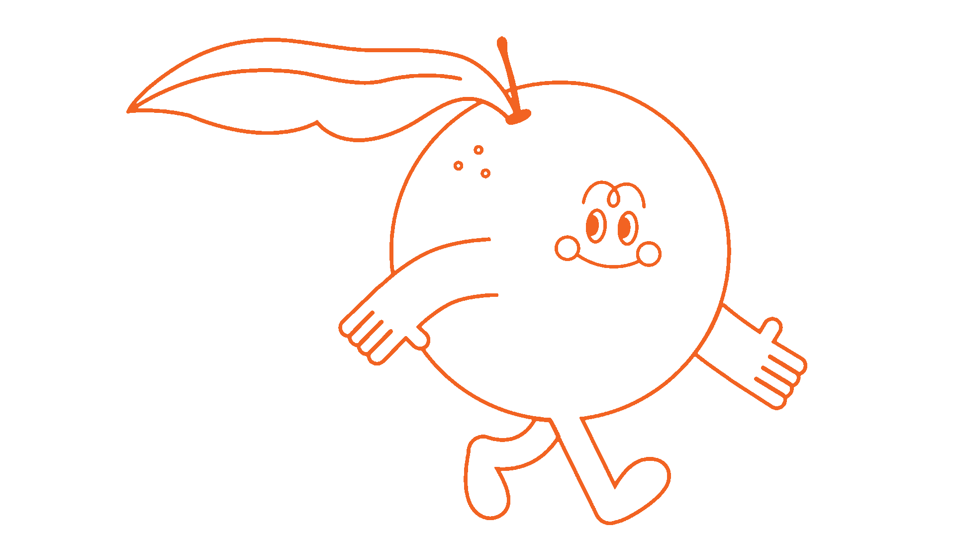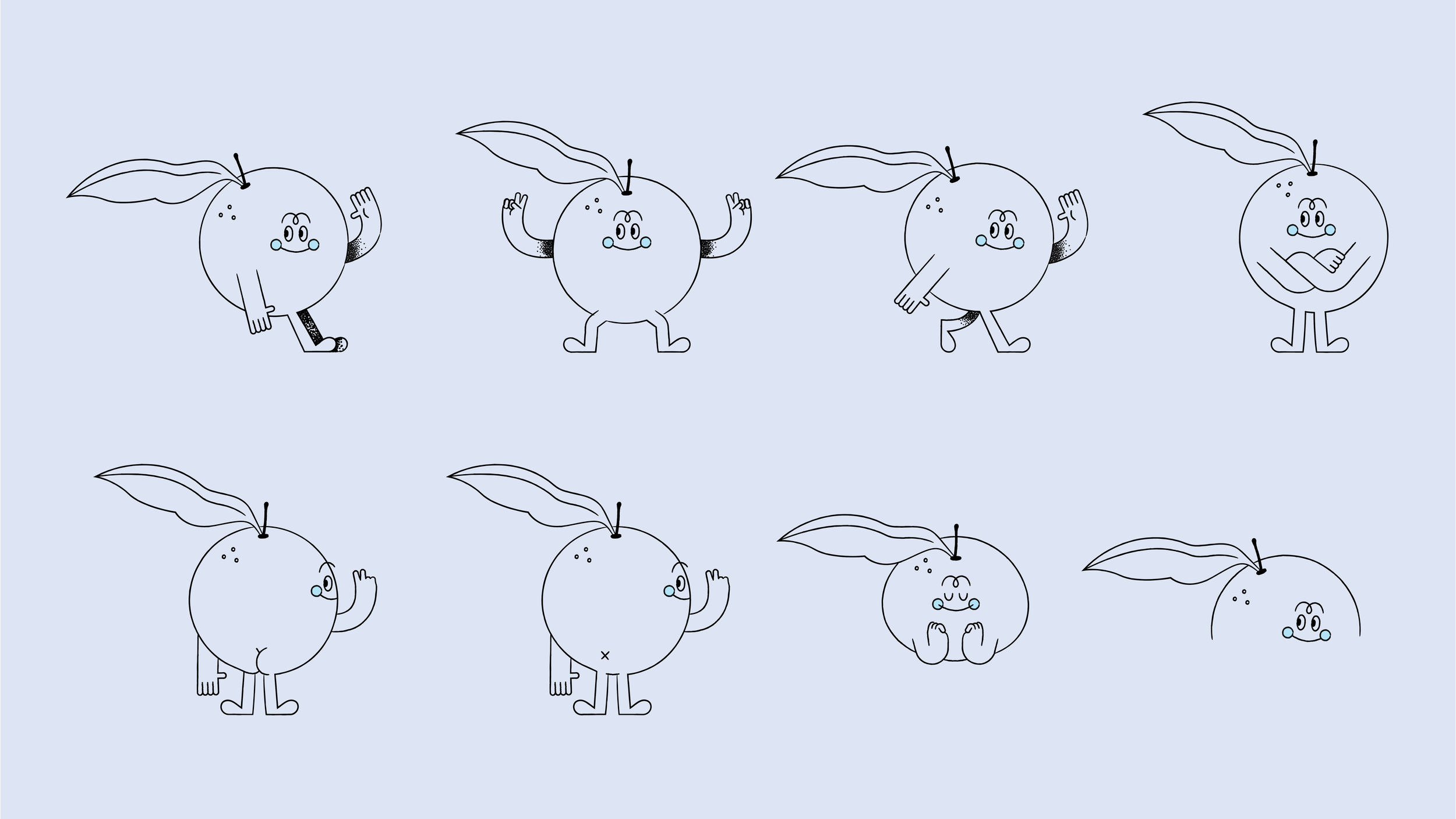 The direction for the OrangeYouGlad rebrand was heavily inspired by layering, stickers, and fun. We intended for the mascots to be a complement to the bold colors and text with their retro, simple line look. Below you can see character sheets for the main cast and the illustration guidelines.